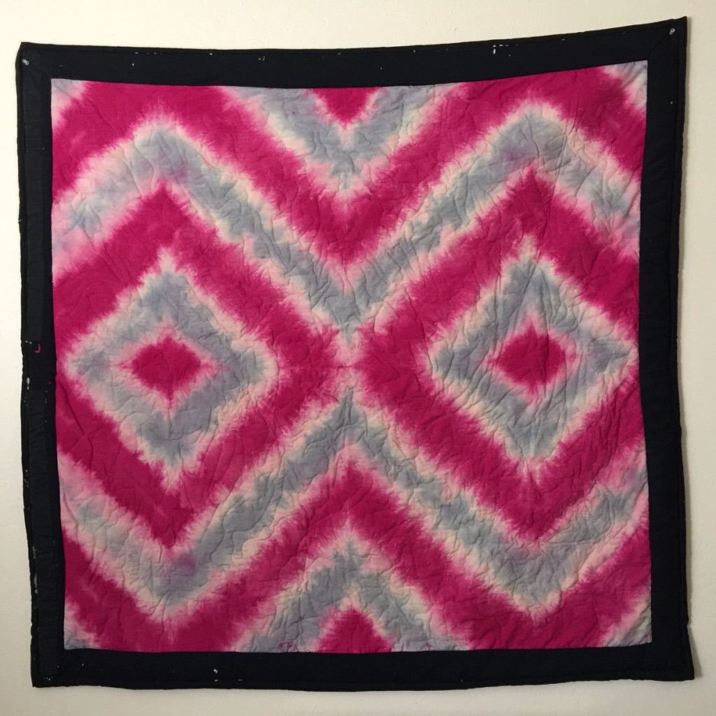 The process of creating a quilt or any type of quilted garment or bag often includes: selecting or creating a pattern, selecting and/or dyeing the fabric, and then, depending on the type of quilt, either sewing the individual panels, which are then stitched together to create the quilt, or directly sewing the quilt or quilted piece of clothing (e.g. jacket, vest, or skirt).