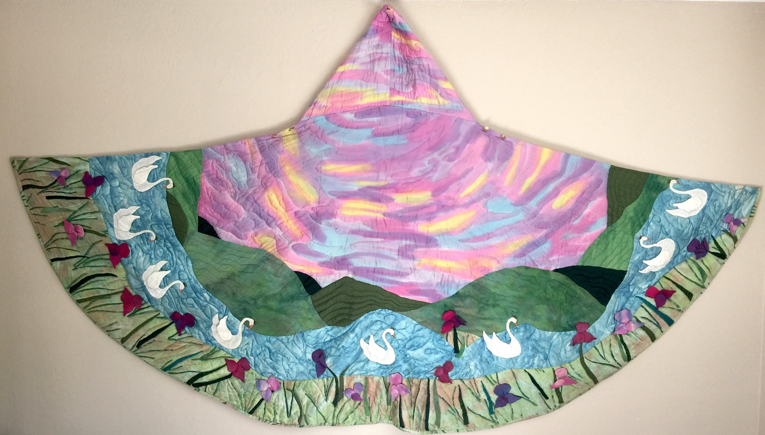As part of the artistic process, Eklund dyed pieces of fabric, some solids and some irregulars. This allowed her to create a variety of colors using a number of different techniques. She explained: