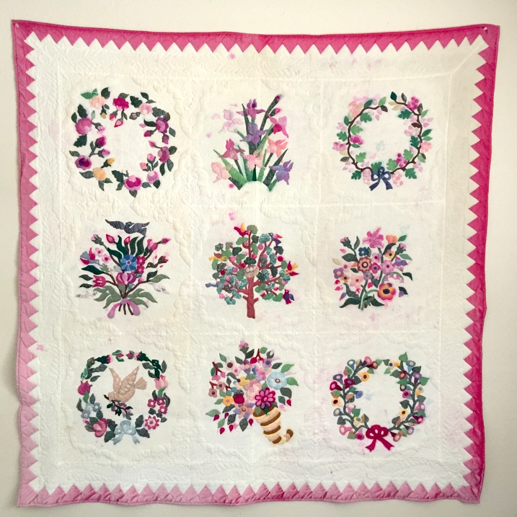 The following are a selection of quilts and other handmade artworks that were found in the home and workshop of Sally Snow Eklund in Assonet, Massachusetts. Any family members and friends interested in particular pieces, please drop a line.